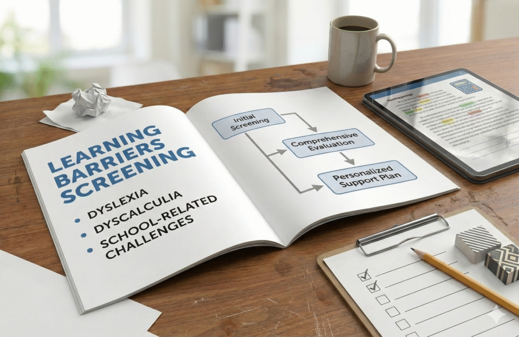 Screening for Dyslexia, Dyscalculia, and school-related learning barriers.